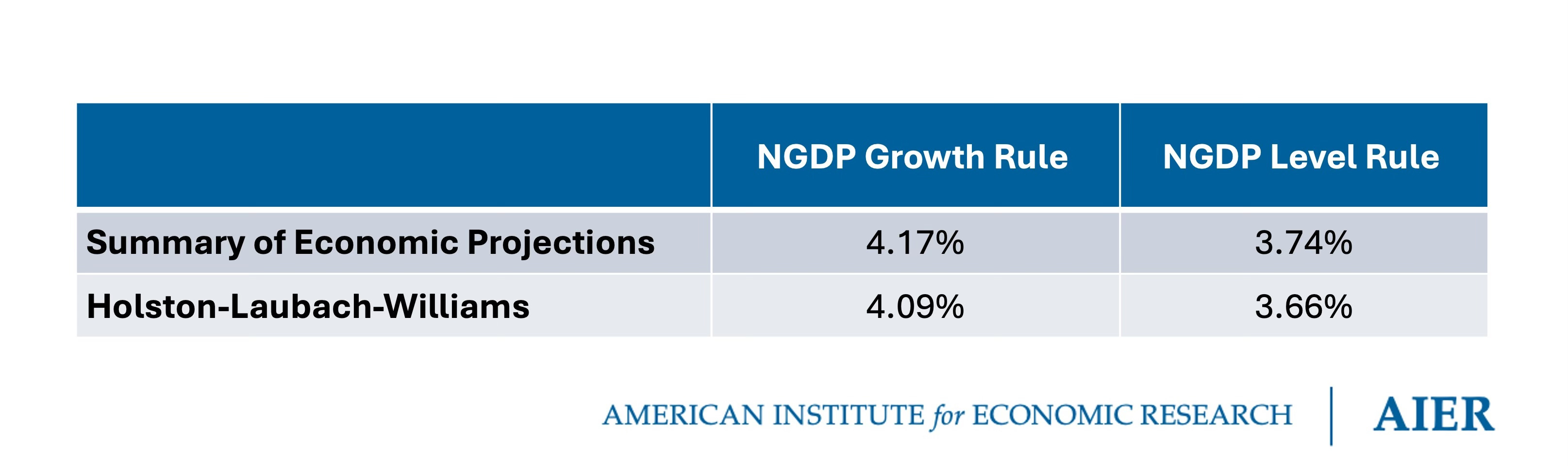 Estimates for the NGDP growth and level rules are presented in Table 2. As with the Taylor rules presented above, I construct two estimates for each rule using the Summary of Economic Projections and New York Fed’s Holston-Laubach-Williams estimate. I employ a smoothing parameter equal to 0.5 and an adjustment parameter equal to 1.0 for all four estimates.
